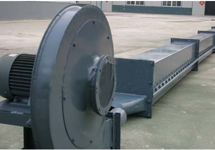 空氣輸送斜槽工作原理:以高壓離心風機(9-19:9-26)為動力源,使密閉輸送斜槽中的物料保持流態(tài)化向傾斜向下的一端緩慢的流動。